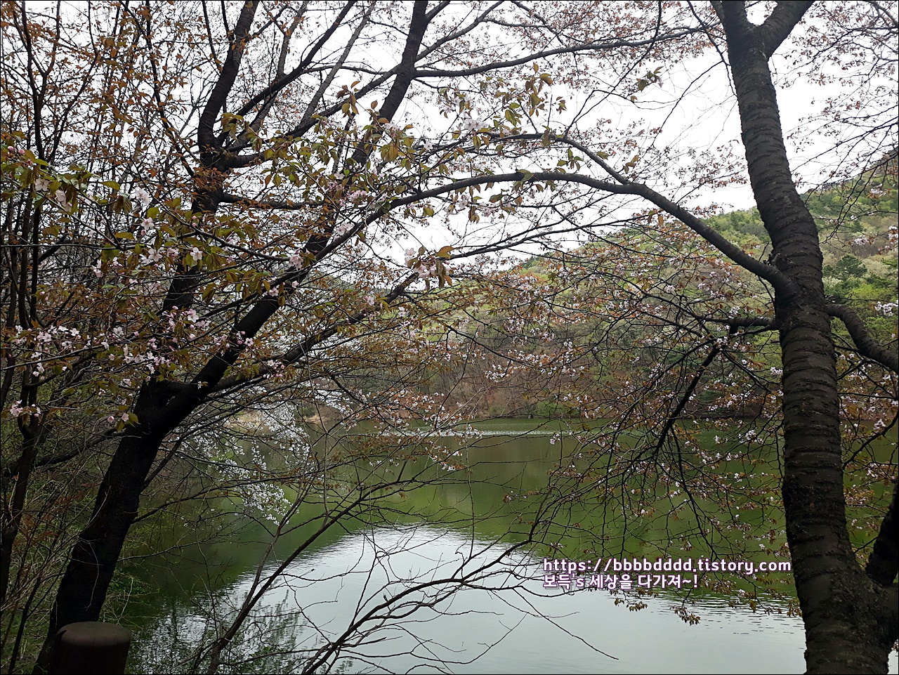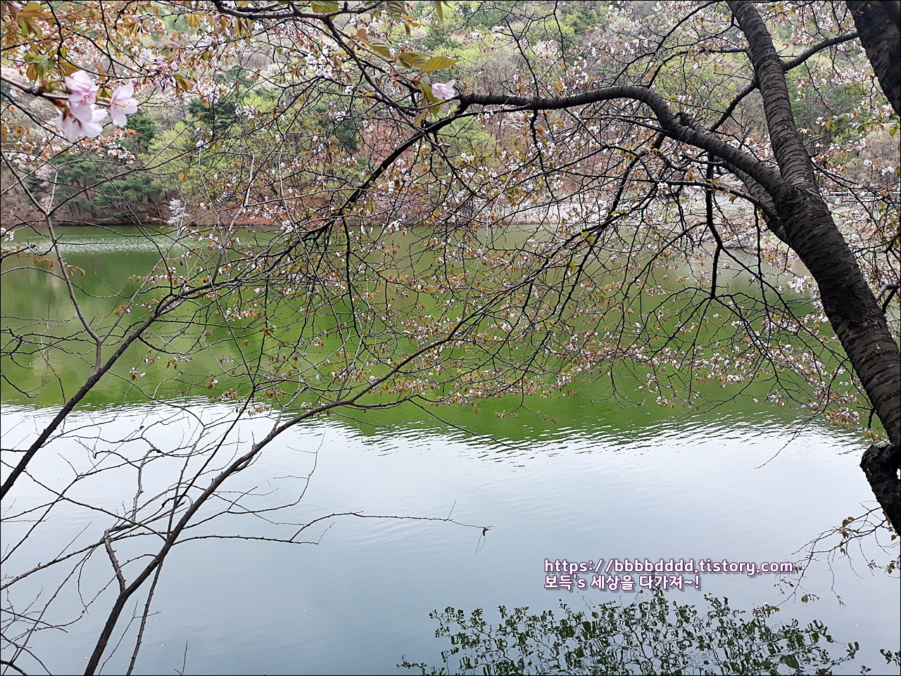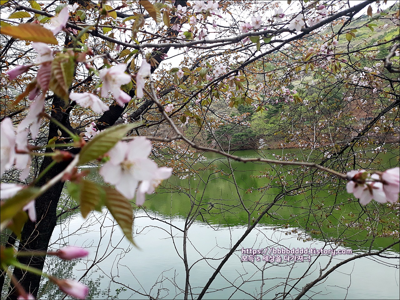 피어난 벚꽃과 함께 조화가 되어, 소류지의 봄 풍경은 그저 아름답기만 하다.