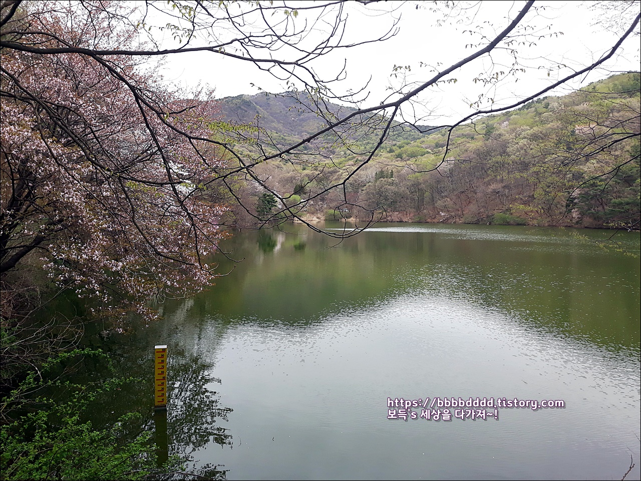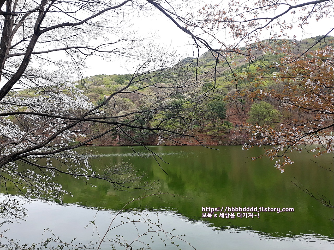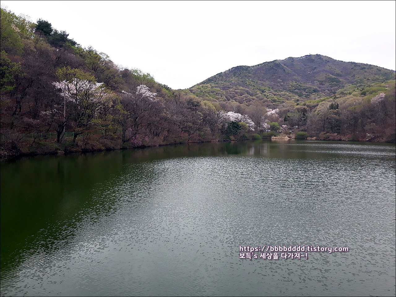 피어난 벚꽃과 함께 조화가 되어, 소류지의 봄 풍경은 그저 아름답기만 하다.