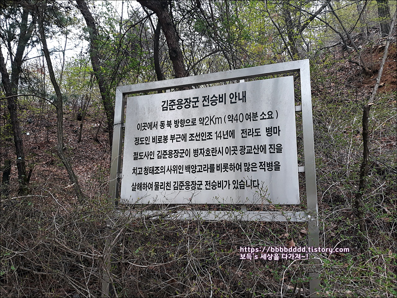 소류지 부근에는 정자각과 함께 '김준용 장군 전승비 안내판'이 세워져 있다.