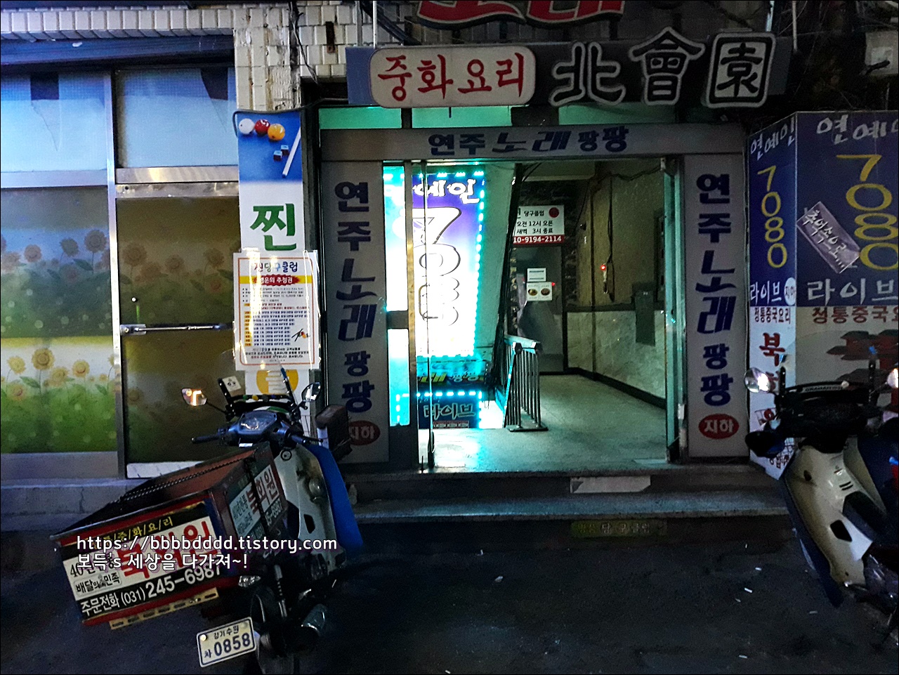 북회원은 배달도 많기에, 입구에 오토바이가 많이 주차되어 있다.
