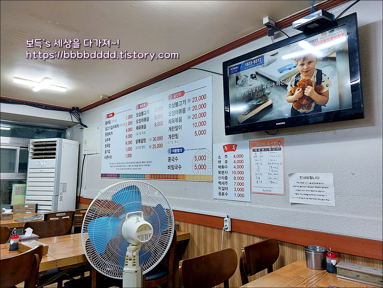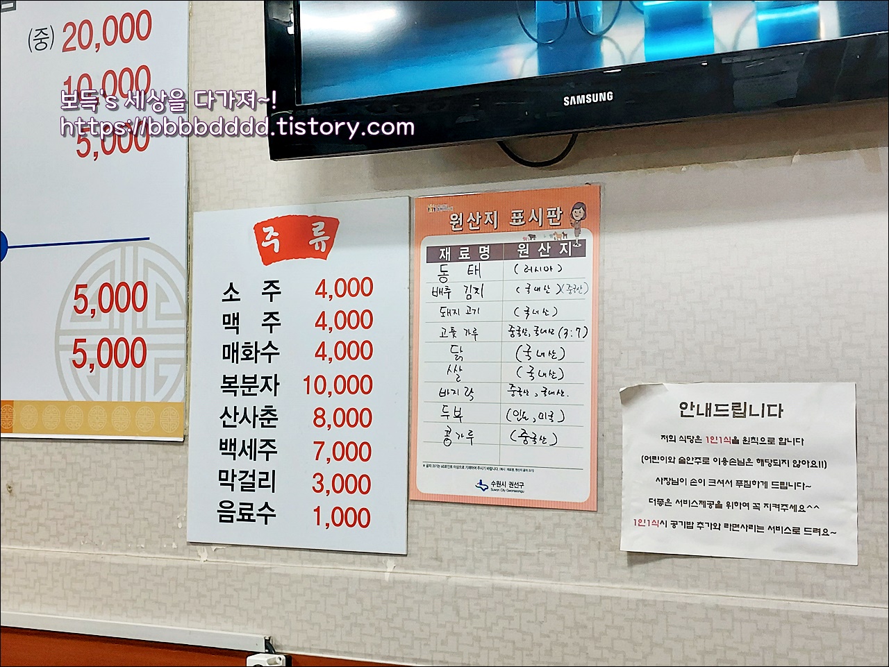메뉴판 옆으로는 벽걸이 tv가 걸려있다.