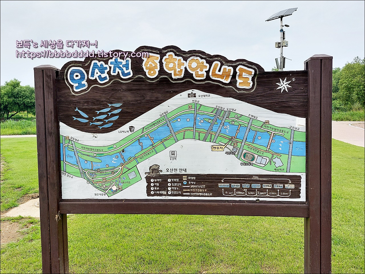 오산종합운동장 부근의 오산천에 세워진 종합안내도이다.