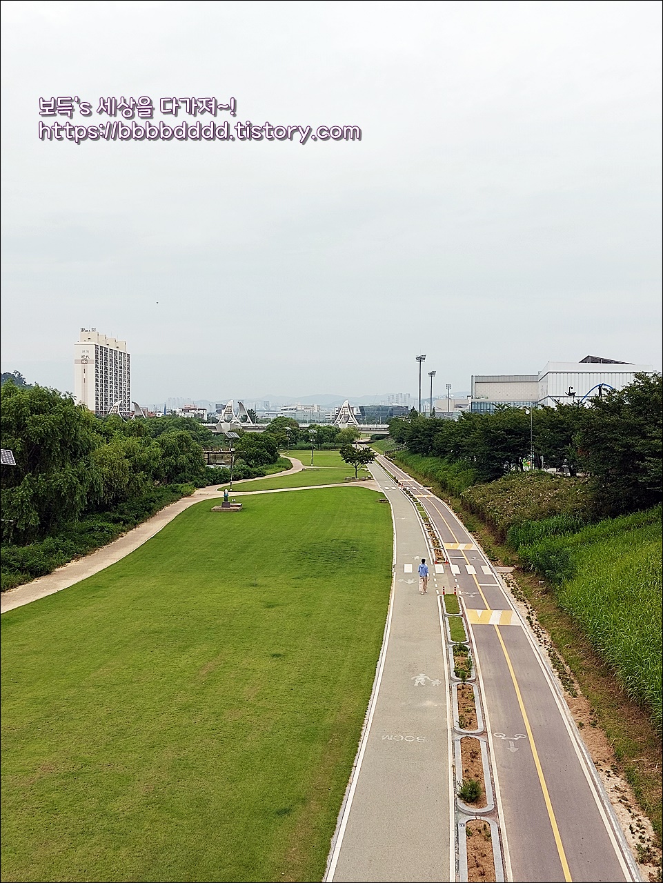 사진은 오산 대교에서 찍어본 오산천변의 산책로이다.