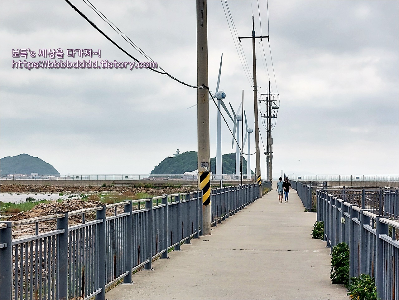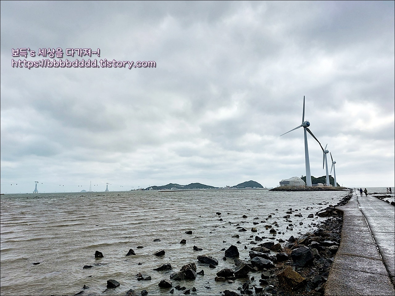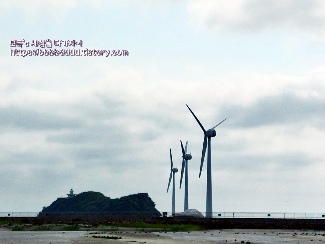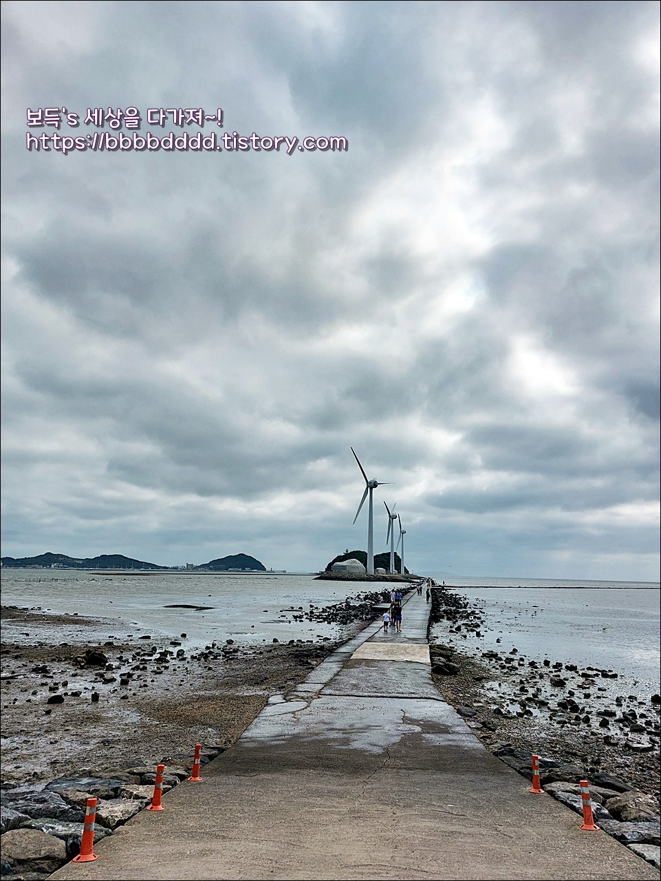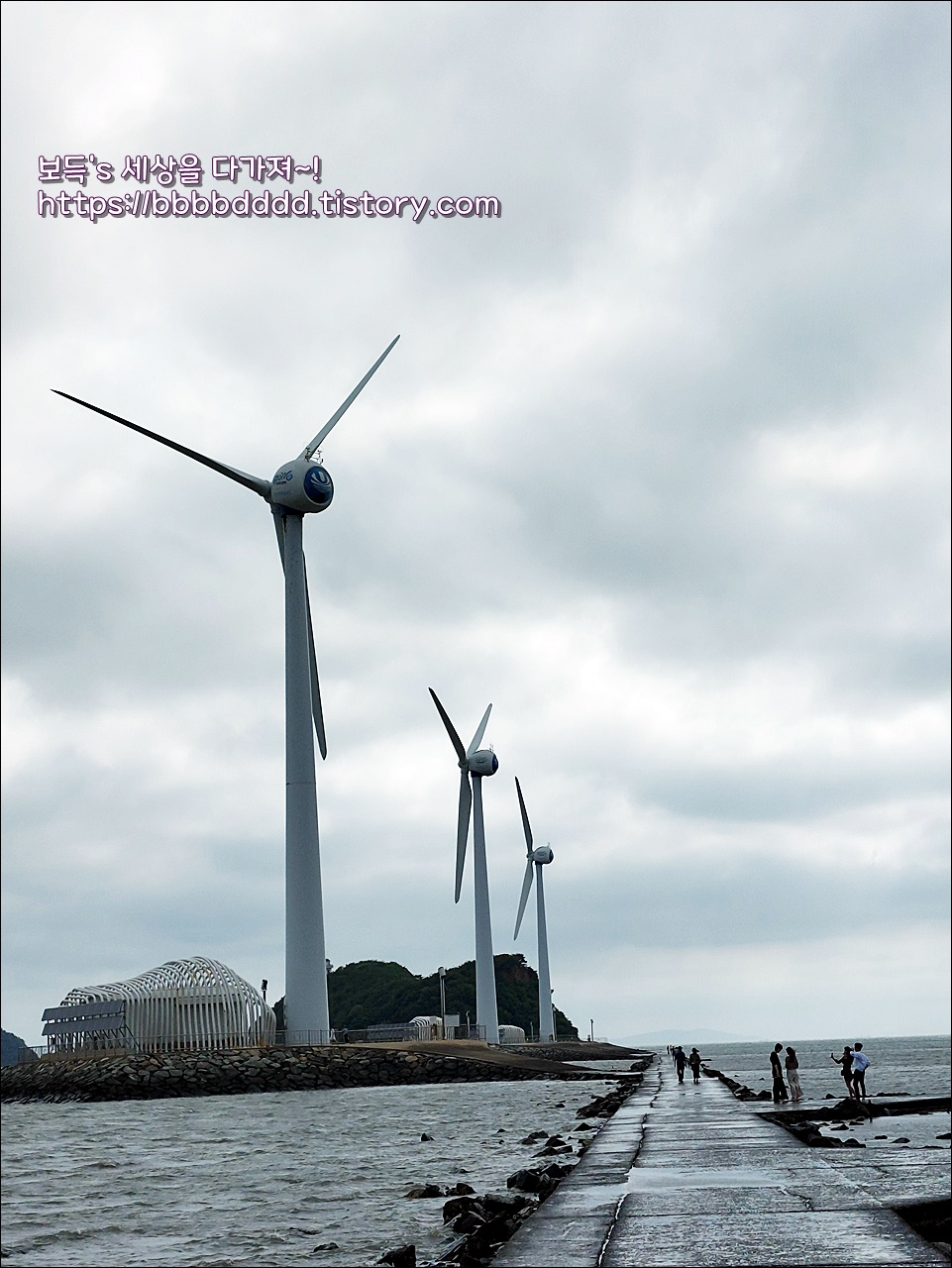 회색빛이 하늘과 열린 바닷길, 그리고 풍력발전기의 조화된 풍경은 하나의 아름다운 그림 같았다.