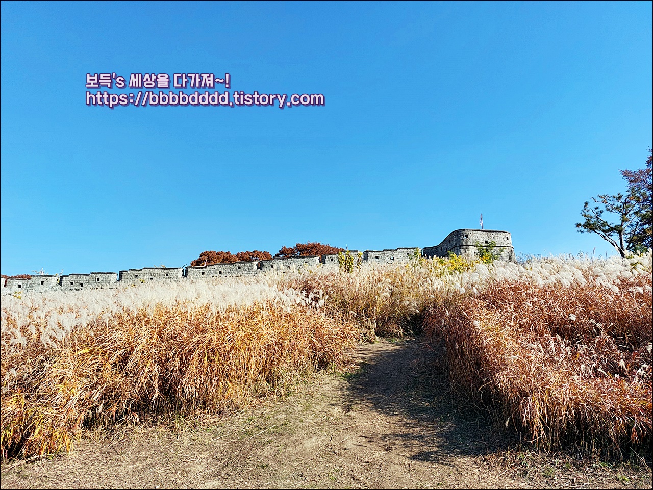 성곽과 억새가 꽤 조화롭다.