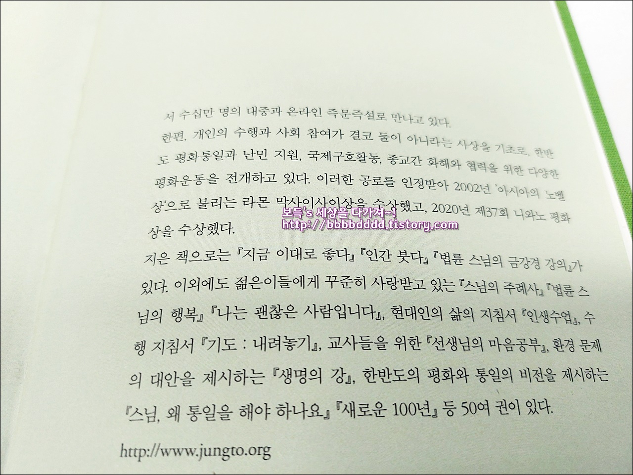 책에 심취하여, 이틀 만에 다 읽어버린 '법륜스님의
