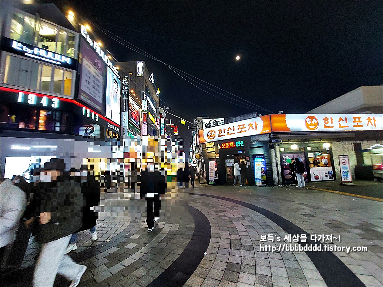 정면에 백종원의 한신포차가 보인다.