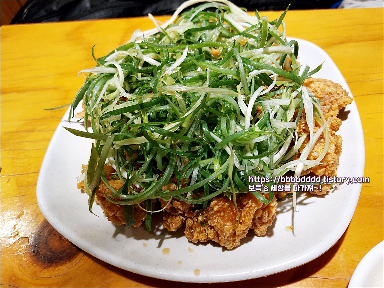 파가 치킨 위에 가득, 아~먹음직스럽다.