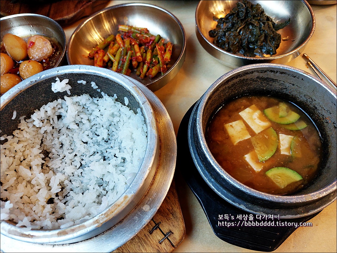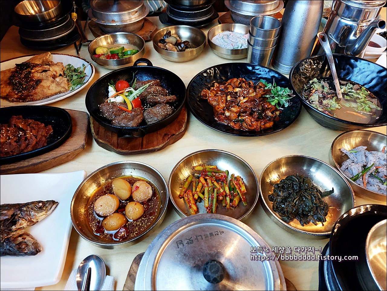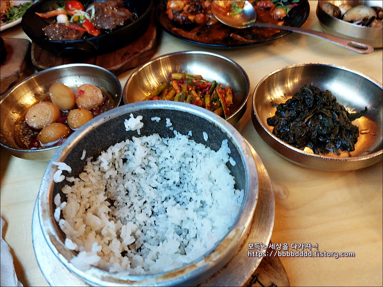 밥은 솥밥으로 나왔으며, 많은 밥찬들은 그 맛이 좋았다.