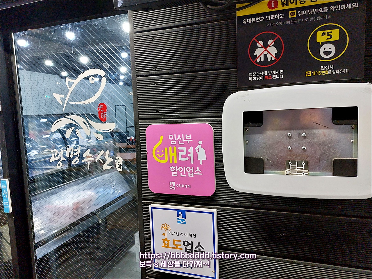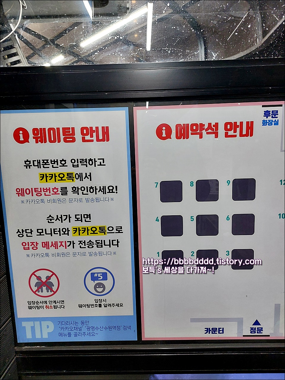 출입구 앞에는 웨이팅 안내가 붙어있다.