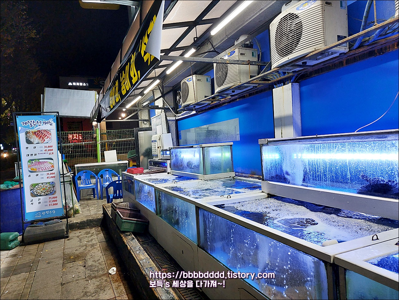 광명수산 앞의 대형 수조.