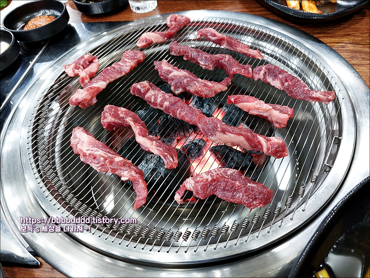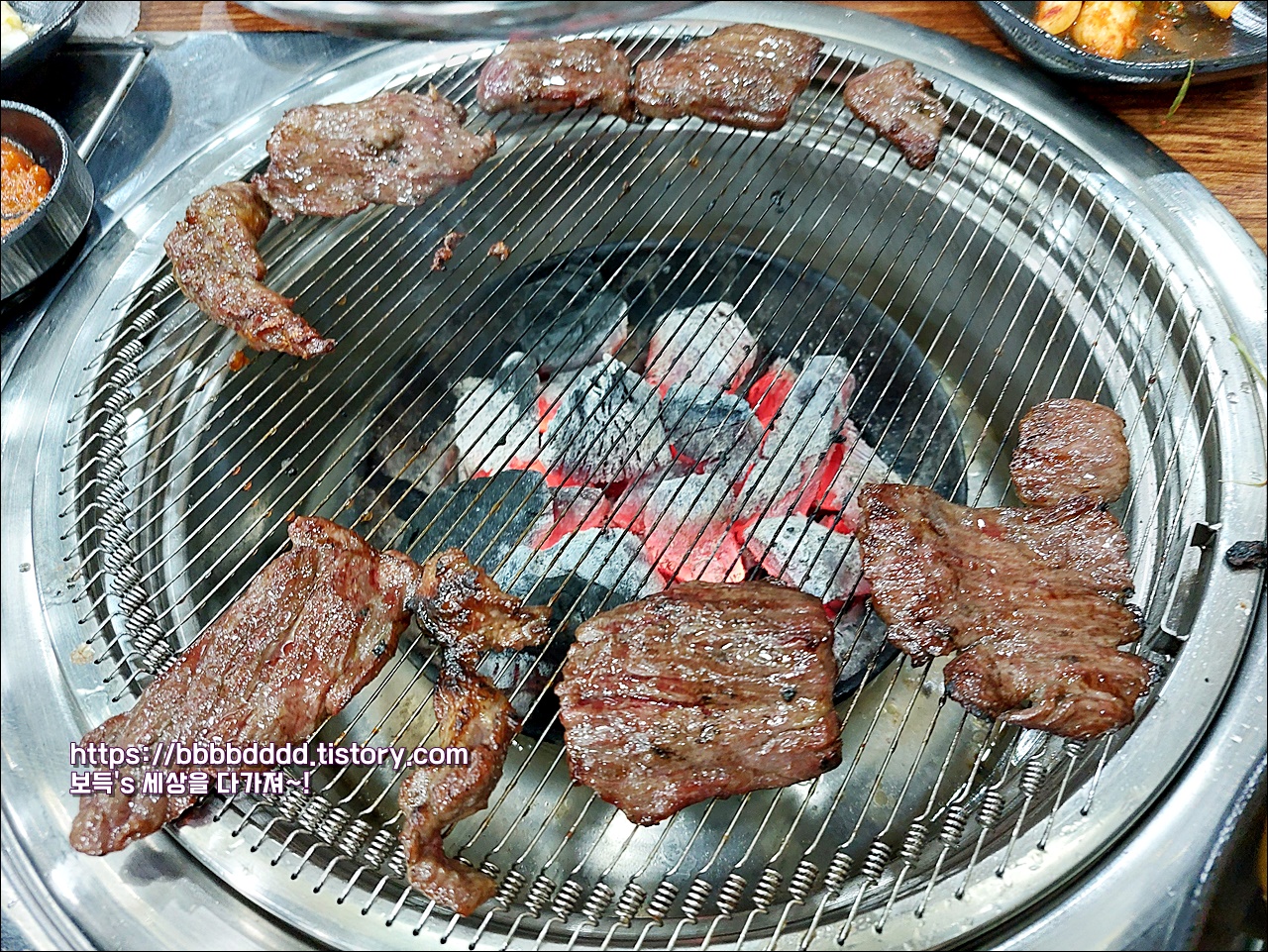 숯불에 굽는 소고기의 안창살 맛은 정말 훌륭하다.