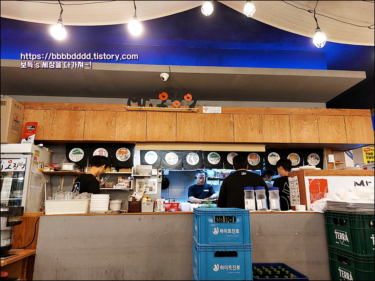 미스터 오징어의 주방 앞에 자리를 잡았었다.