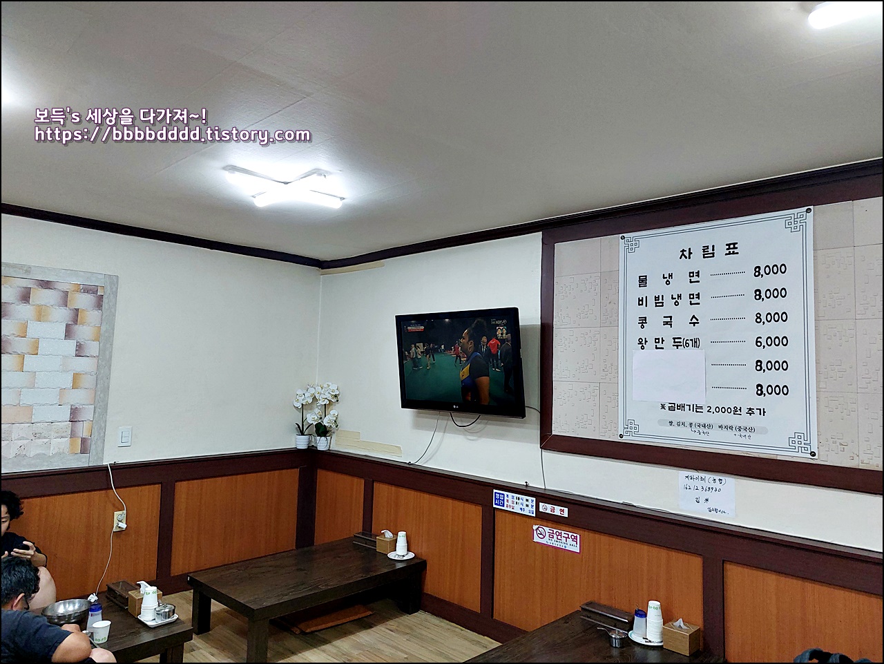 벽면에는 TV와 메뉴판이 있다.