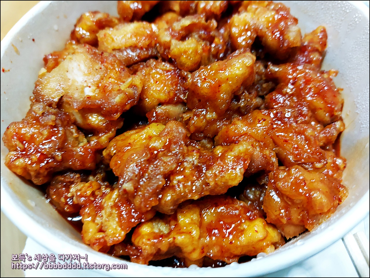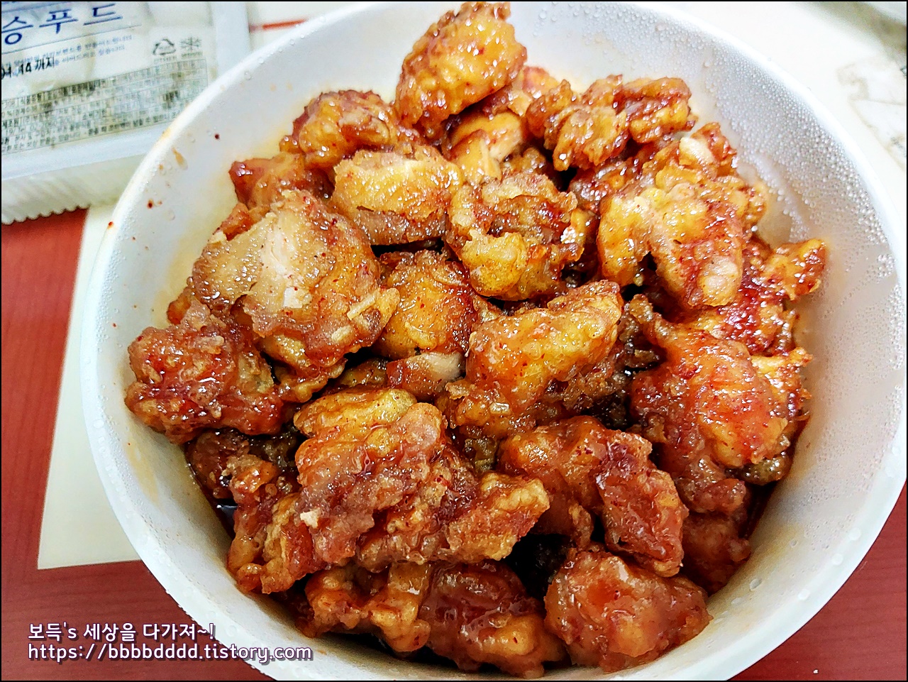 이곳에서 닭강정을 사가지고 먹어보았는데,