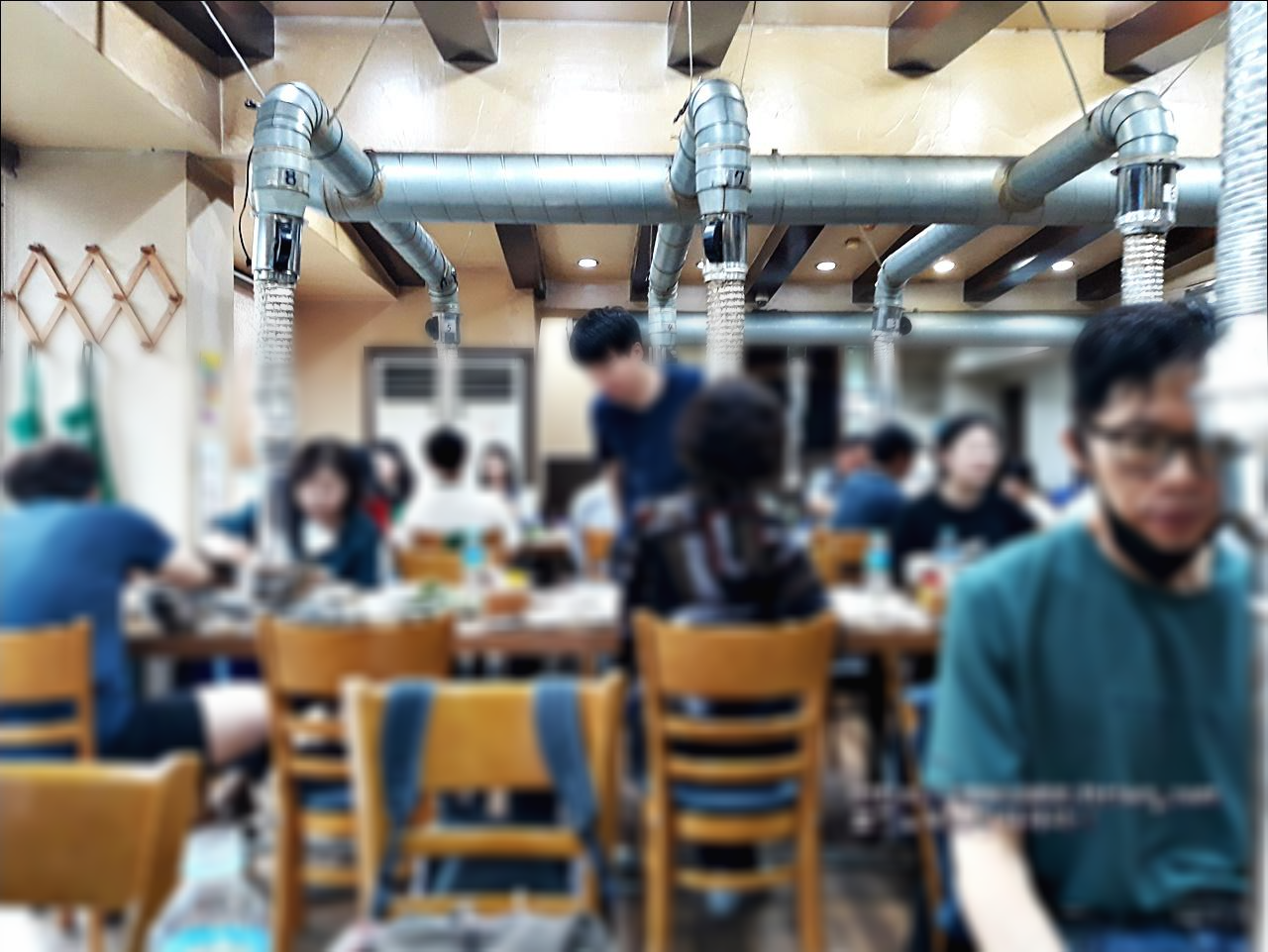 음식점 내부는 비교적 넓은 편인데, 손님들로 가득 차 있다.