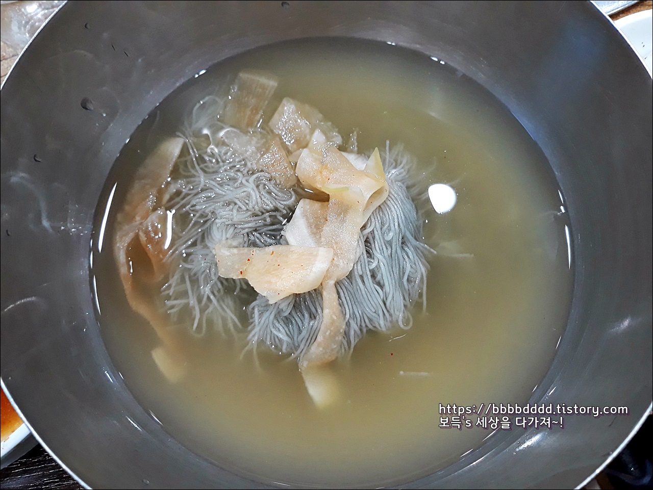 단골인 지인이 무료 냉면을 청하지 국물 시원한 냉면이 나왔다.
