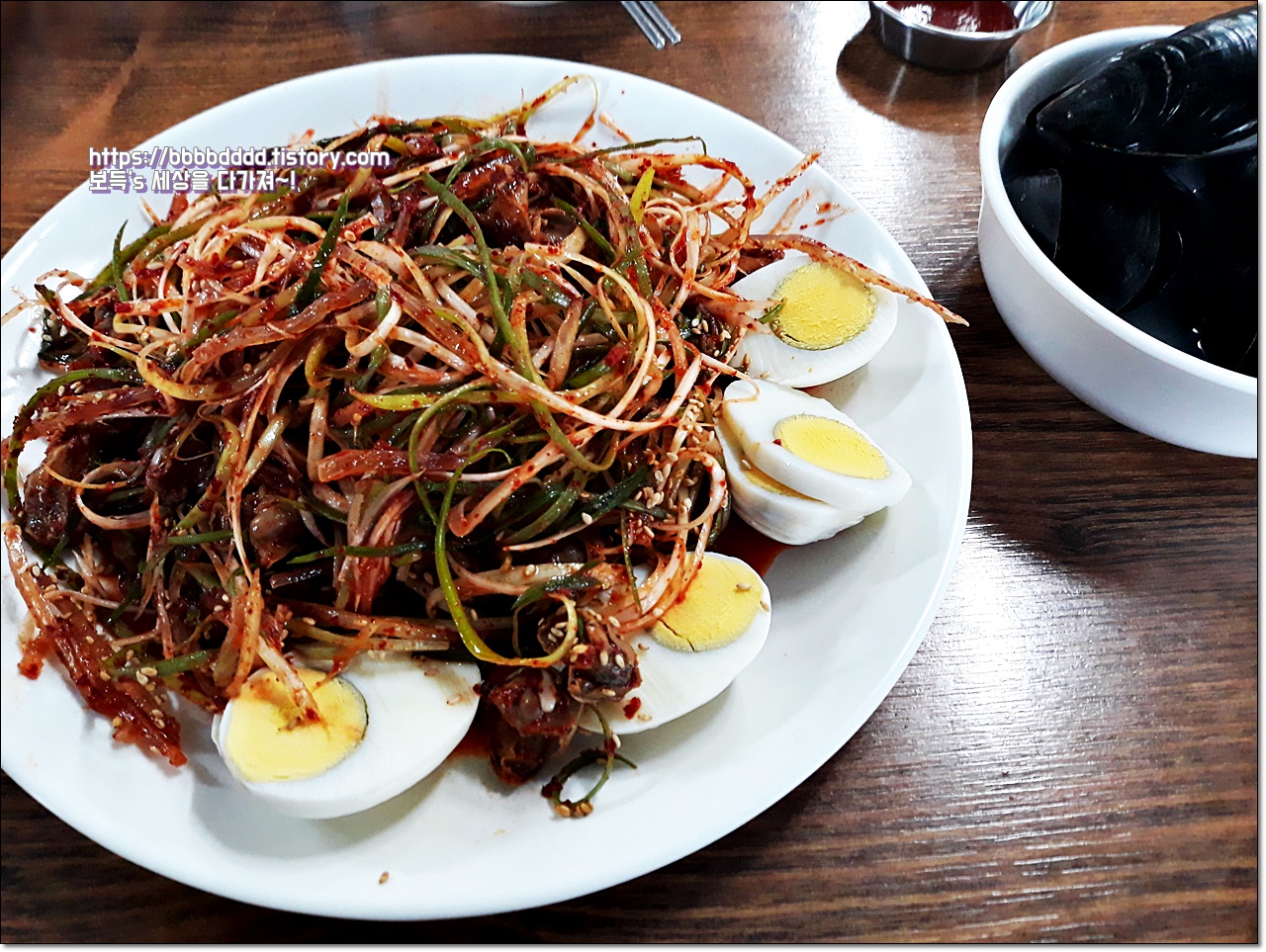 계란말이와 골뱅이의 매콤한 조합이 꽤 괜찮다.